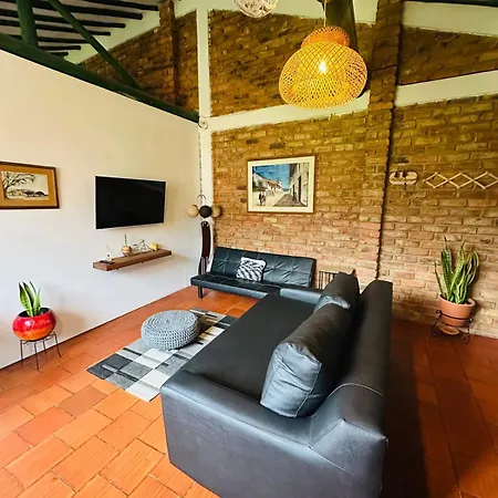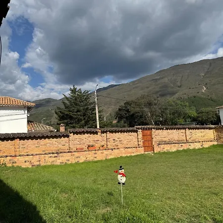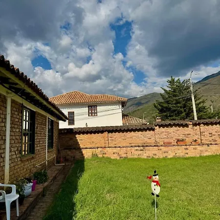 Situated merely a 6-minute walk from the Airplane Park, the 3-bedroom Casa Familiar - Cerca A La Plaza - Amplio Jardin Villa Villa de Leyva features a patio with views of the garden.