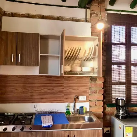 A fully furnished kitchen is part of the amenities available at Casa Familiar - Cerca A La Plaza - Amplio Jardin Villa. - ❓